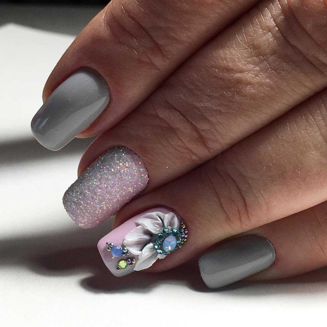 Добавьте в свой маникюр больше игры света при помощи красивейших кристаллов. Уже доказано, что лучи, преломляющиеся на множественных гранях, ассоциируются с роскошью и праздником в сознании человека. Все любят драгоценные камни и стразы хорошего качества. Разноцветные кристаллы и стразы сделают узор на ногтях праздничным и оригинальным.