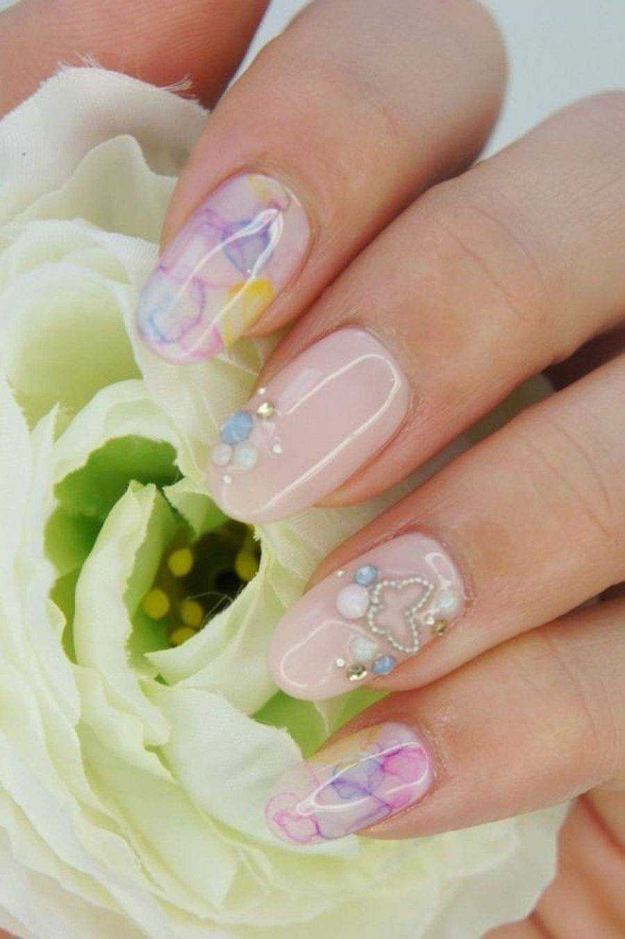 Как уже упоминалось ранее, для свадебного дизайна многие предпочитают стразыи другие декоративные элементы. В этом случае не стоит слишком перегружать ногти различными камнями и бусинками – это будет смотреться слишком броско и вычурно, к тому же это не очень практично. Имейте в виду, стразы имеют свойство отваливаться в самый неподходящий момент.