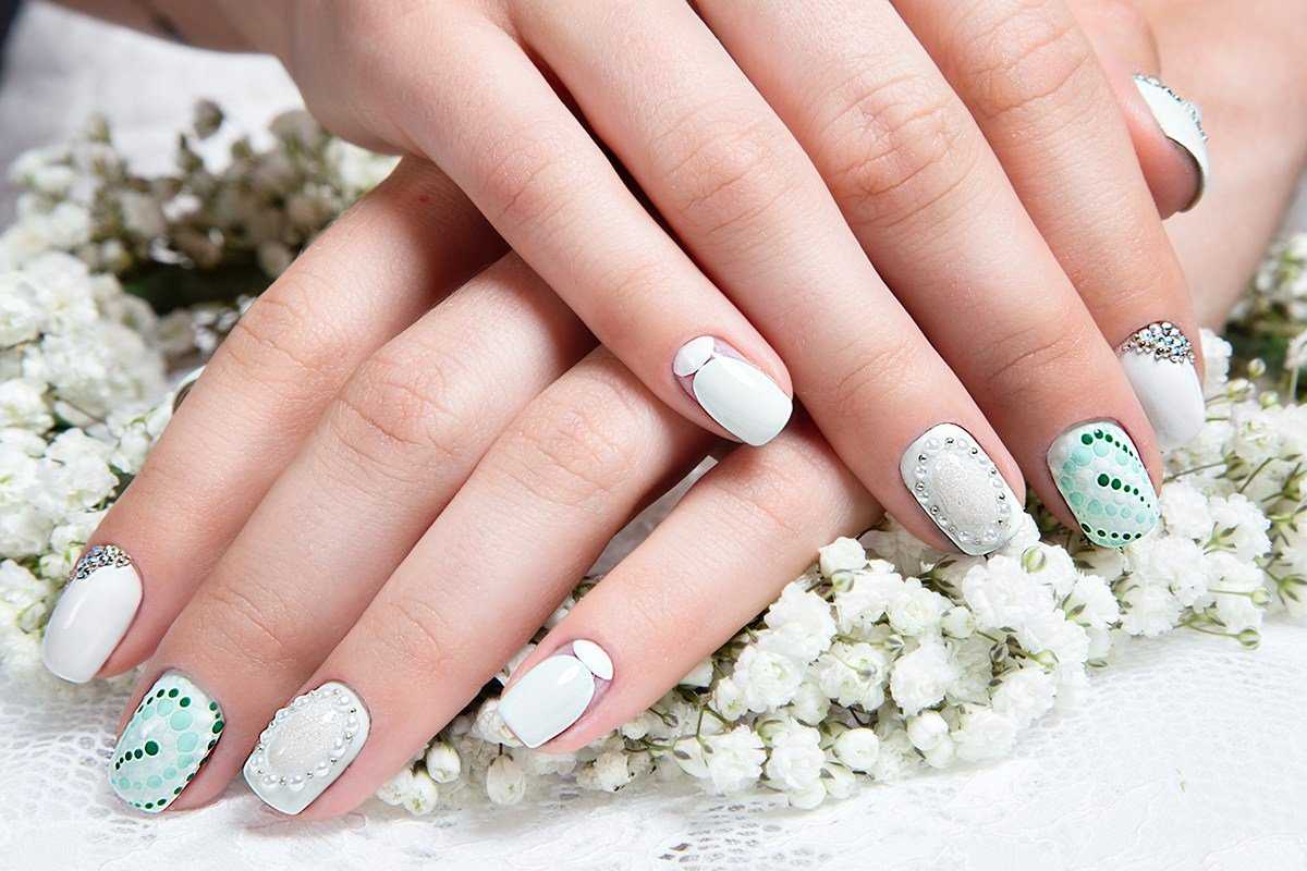 Классическими цветами для свадебного маникюра являются белый и розовый, однако часто выбирают и другие пастельные тона, которые удачно гармонируют с нарядом невесты.