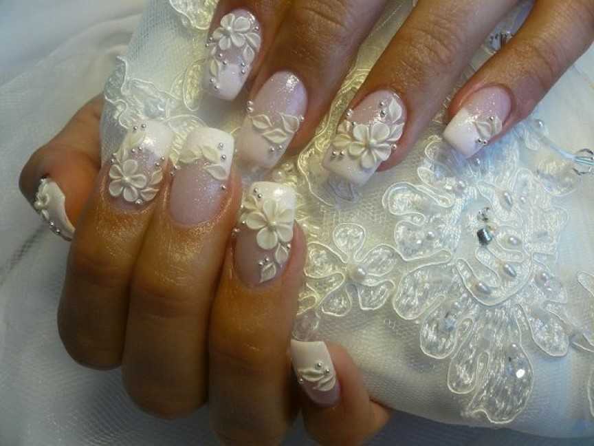 Не так давно для свадебного дизайна часто применяли лепку акрилом. Однако сейчас этот вид дизайна ногтей не столь популярен. Хотя если это вам нравиться, почему бы и нет.