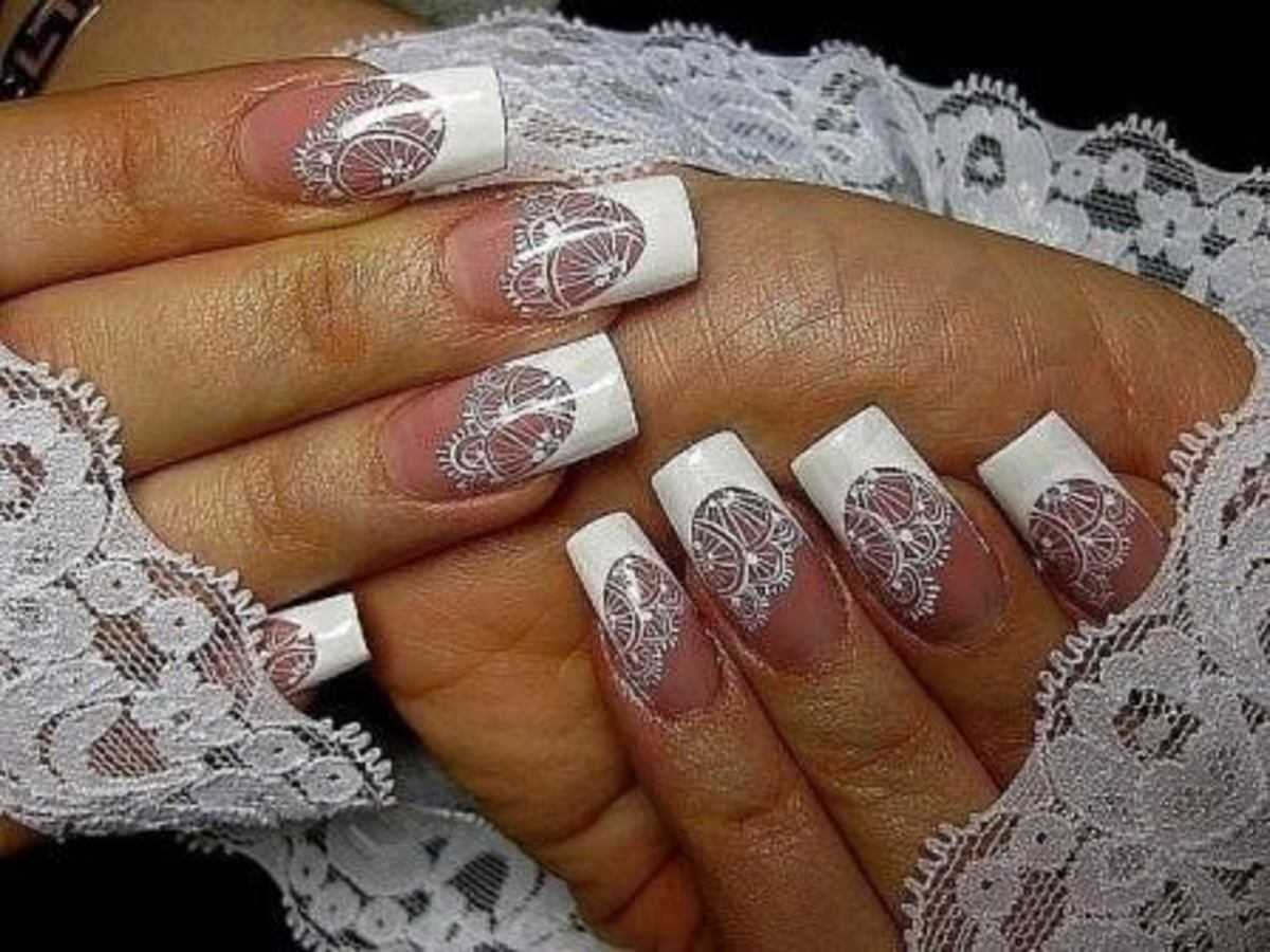 Часто для украшения ногтей невесты используется кружево или его имитация. Рисунки в виде кружева являются одним из беспроигрышных вариантов свадебного дизайна.