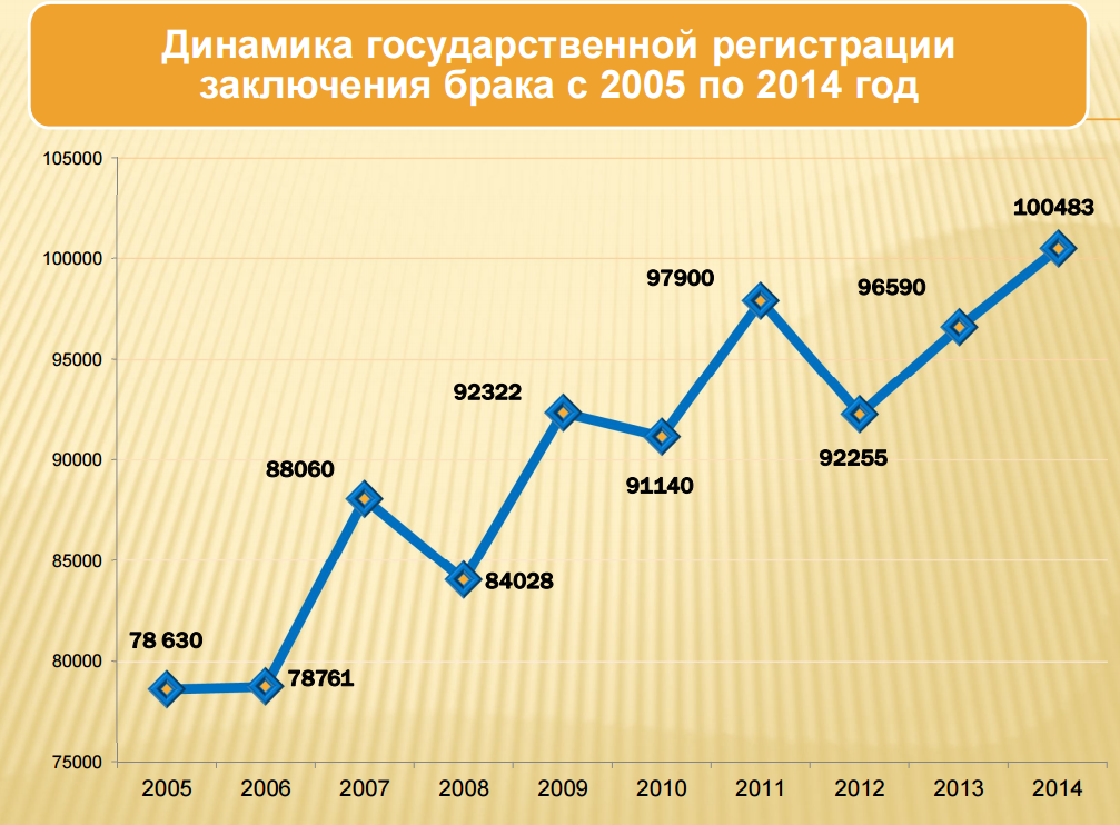 За последние года в России растет с каждым годом количество заключаемых браков. Можно сделать вывод, что спрос на организацию свадьбы постоянно растет.