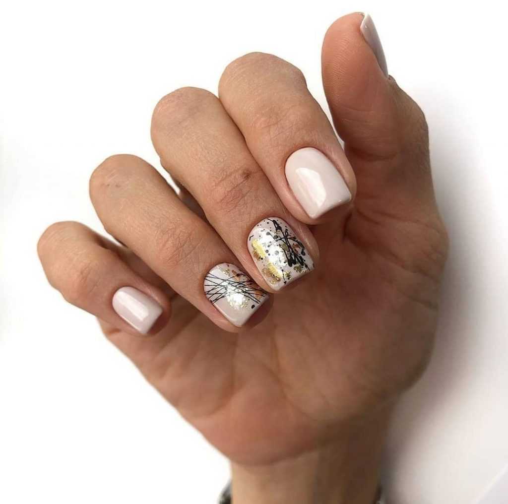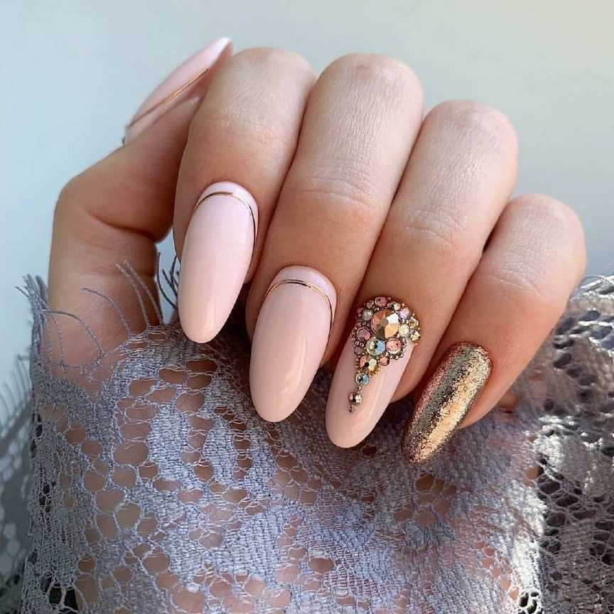 Если говорить о минимализме и нюдовом маникюре 2020-2021 то самым ярким примером дизайна здесь будут лаконичные металлизированные полоски. Подобный дизайн выглядит максимально минималистическим, при этом нюдовый маникюр сохраняет изящество и оригинальность.
