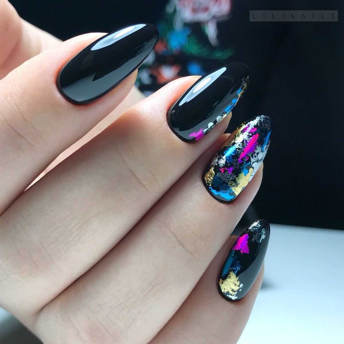 Украшение фольгой и блестящими конфетти в 2020-2021 стало менее популярно, чем раньше. Однако полностью отказаться от такого оформления мастера маникюра пока не готовы. Да и многим девушкам такой дизайн очень нравится.