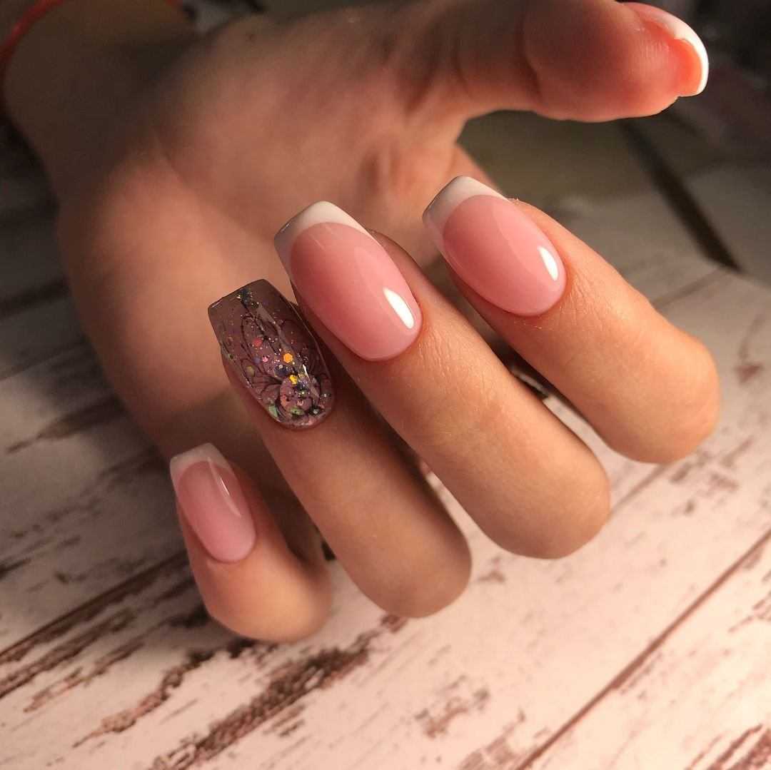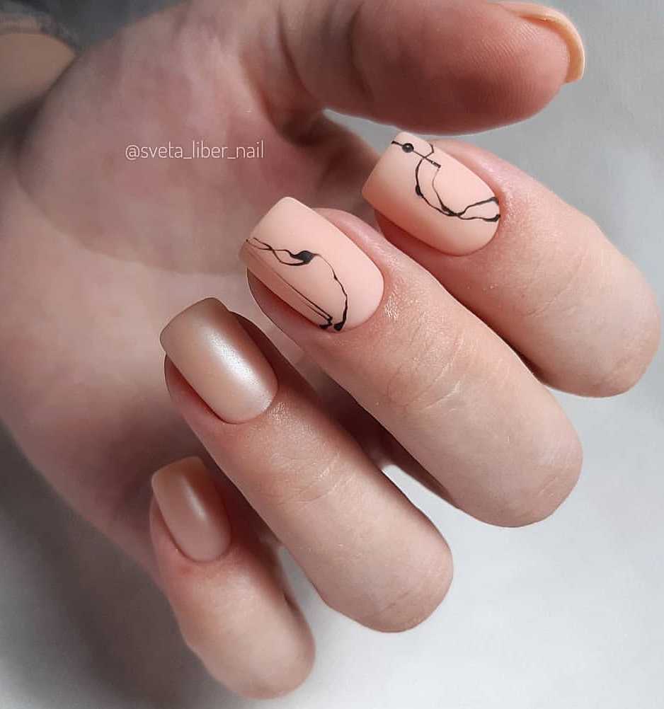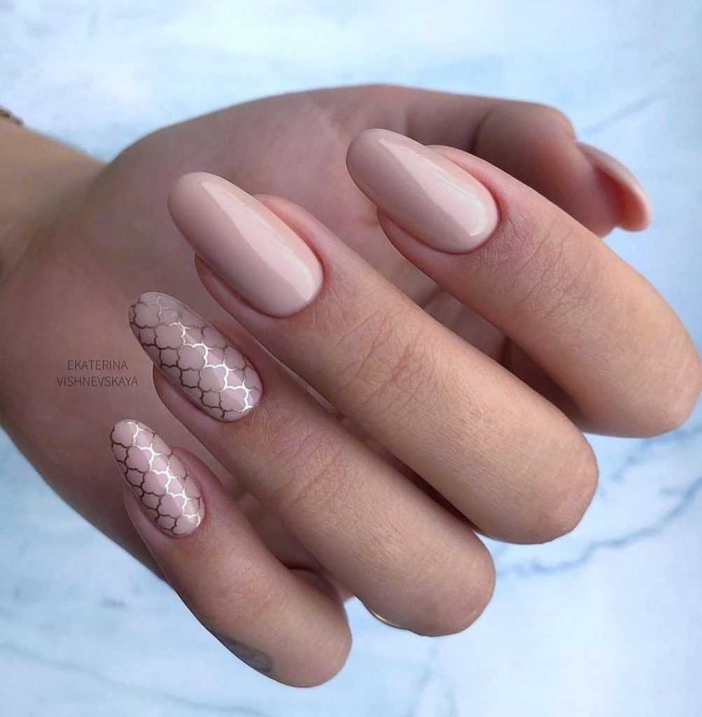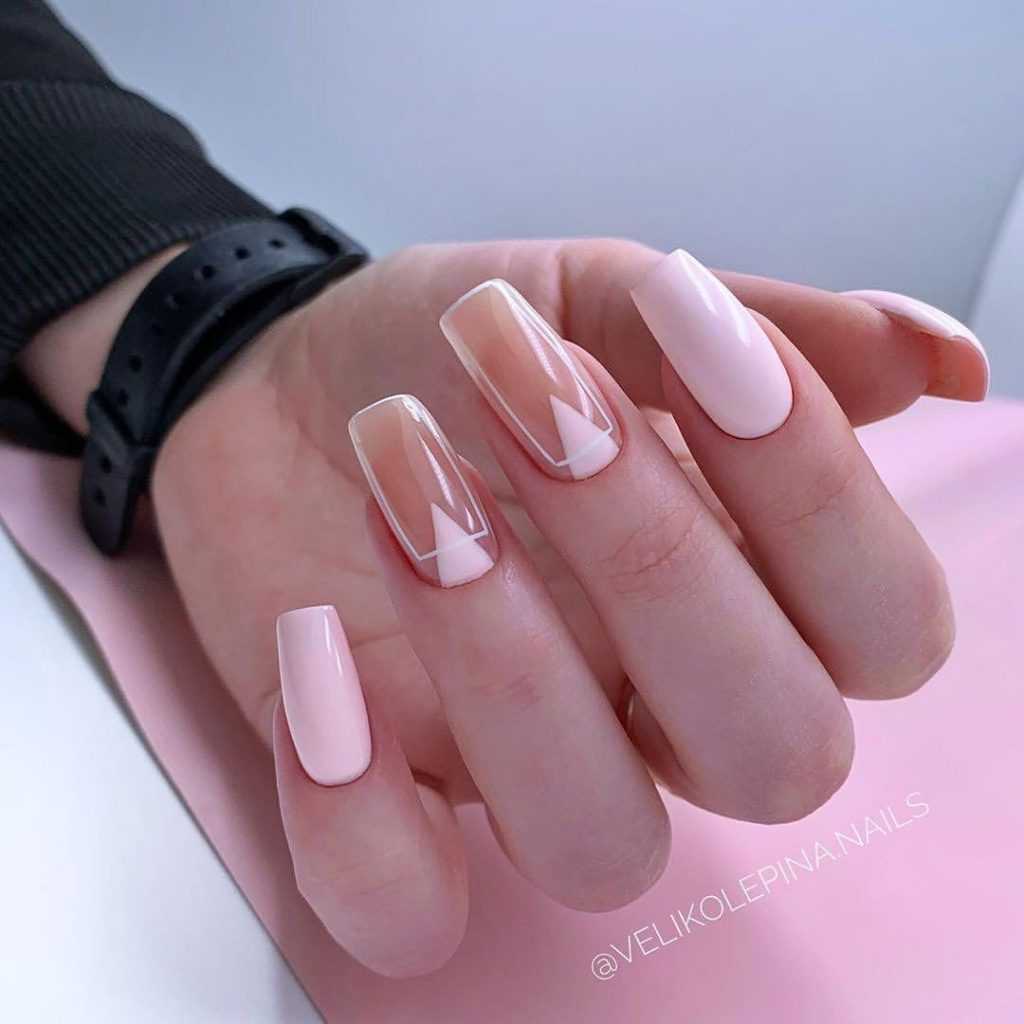 Модный дизайн маникюра в 2020-2021 — нюдовое покрытие и оригинальное оформление.