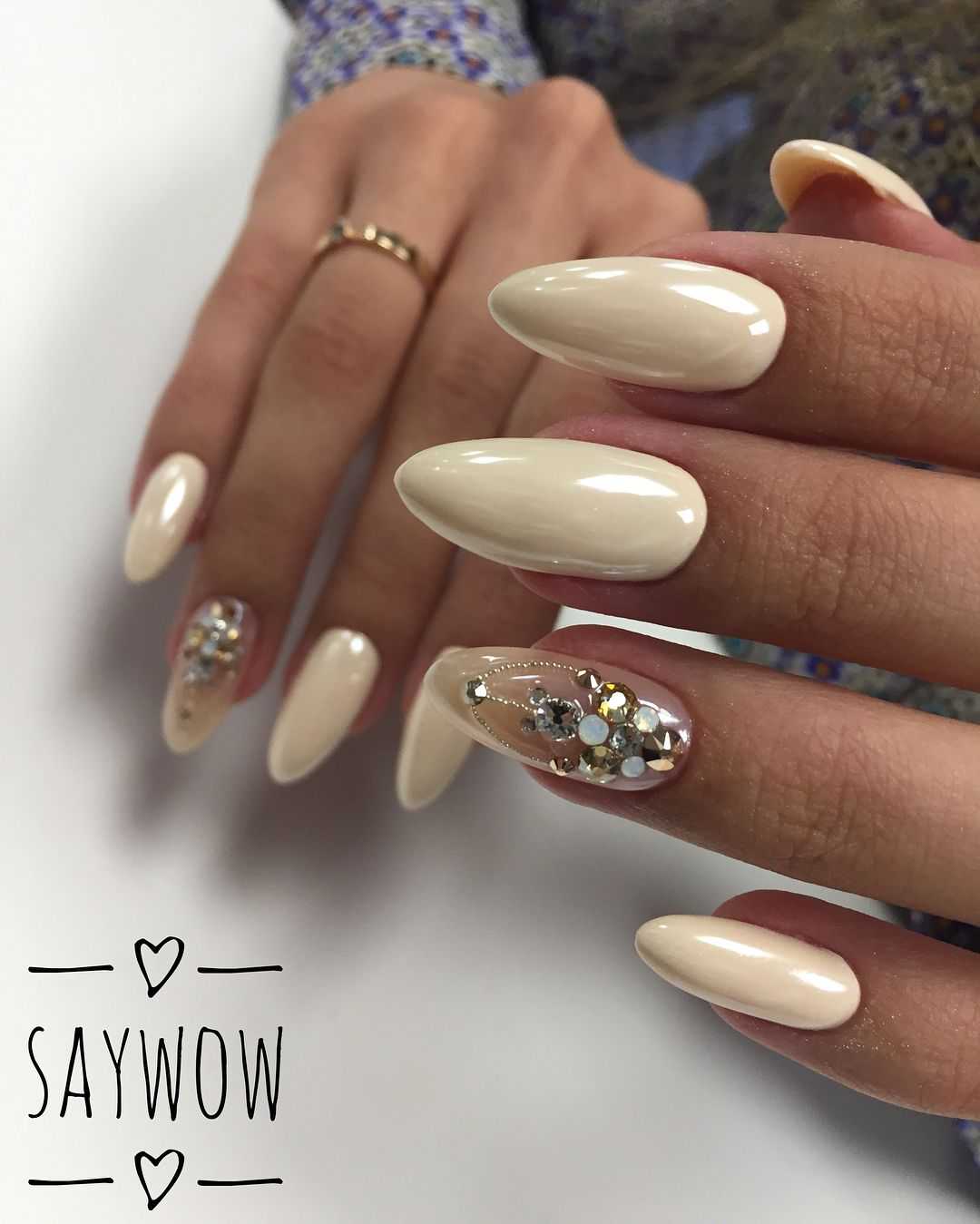 Нежный бежевый нюд маникюр для невесты – это необычная классика, а настоящий хит этого года. Ведь уже известно, что новый модный сезон приветствует естественность. Чтобы подчеркнут праздничность такого выбора, допускается использовать незначительное количество декора.