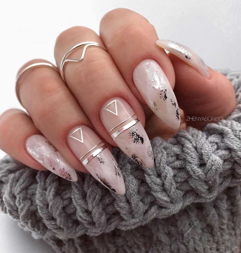 Правильное сочетание нюдовых оттенков и серебра. Популярнейшая идея маникюра.