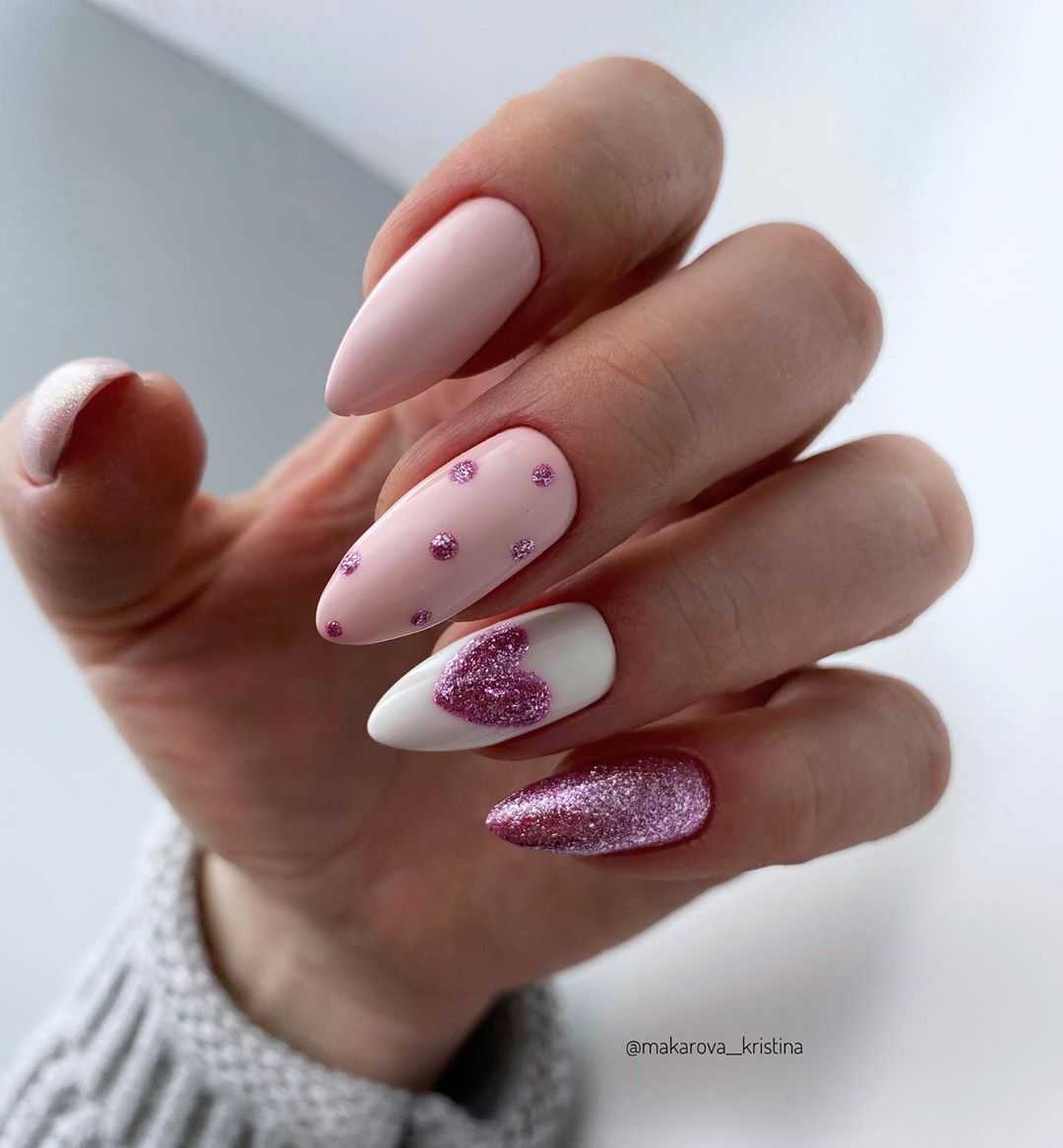 В начале нового нейл-сезона 2020-2021 года большую популярность в маникюре получили сердечки в самых неожиданных и оригинальных исполнениях. Поэтому в нюдовом маникюре изображения сердца или сердечек стало одним из самых трендовых. Советуем присмотреться к сердечному принту с дизайном крошечными бульонками на нюдовом покрытии.