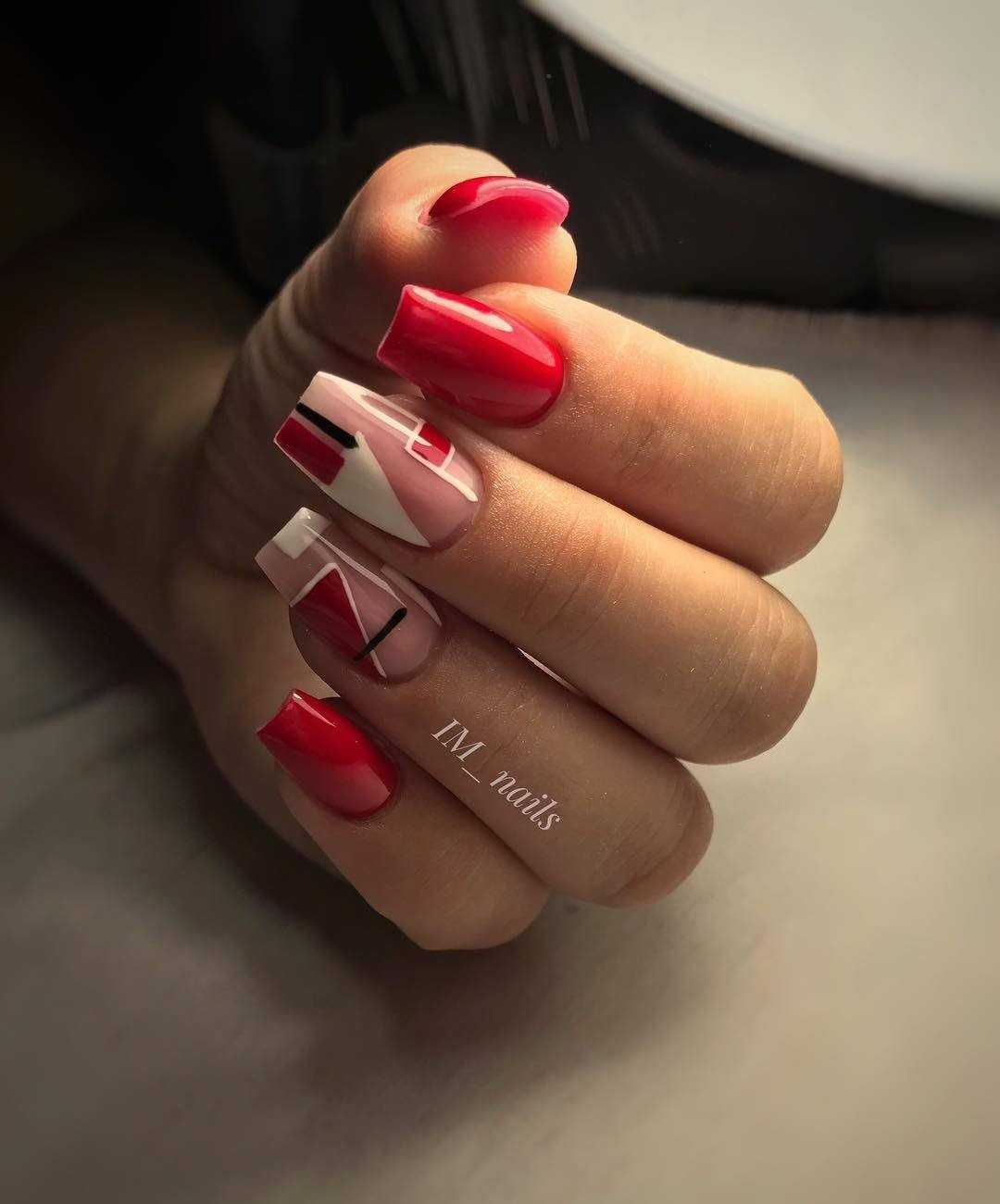 Геометрический нейл-арт актуален всегда и в сочетании с нюдовыми оттенками подобные рисунки приобретают изящность и смотрятся как-то посовременнее. Речь идет не о простых полосках и линиях, а о неповторимых сложных узорах, которые можно дополнить глиттером и цветным сочетанием.