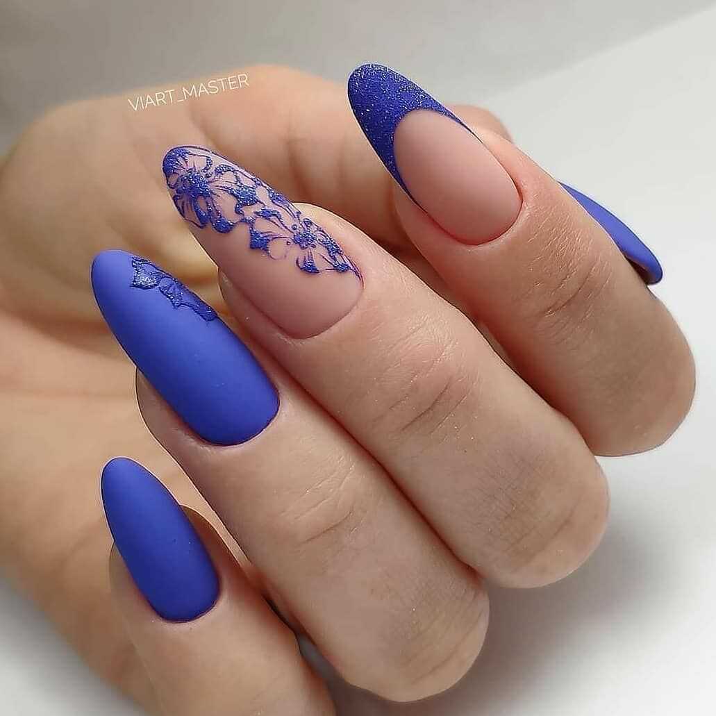 Голубой или синий маникюр для невесты. Как говорилось ранее, многие девушки уходят от стандартов и отдают предпочтение индивидуальности. Поэтому маникюр на свадьбу может быть выполнен в яркой цветовой гамме. Очень популярен в этом сезоне голубой и синий цвет. Эти оттенки можно смешать между собой или же использовать по отдельности, дополняя результат подходящими декоративными элементами.