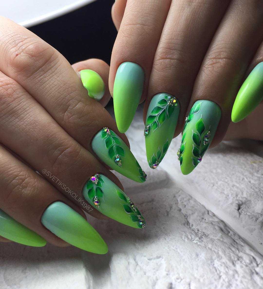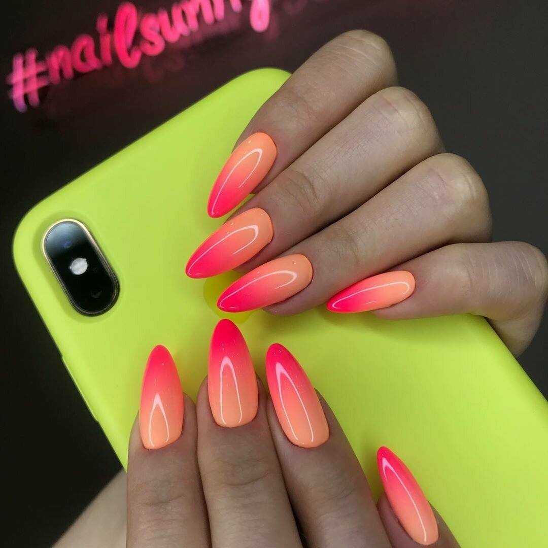 Длинные ноготки – находка для тех девушек, которые любят градиентные нейл-арты. На длинных ногтях получается разместить плавных переход оттенков без резких переходов. Используйте как похожие по колористике тона, так и контрастные оттенки. В последнем случае необходимо тщательно растушевывать цвета, чтобы переходы получились как можно мягче.