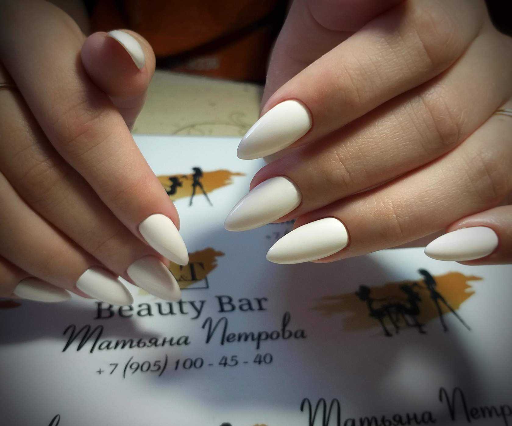 Нюдовый градиент в матовом топе выглядит очень эффектно. Рекомендую всем любительницам острых ноготков.
