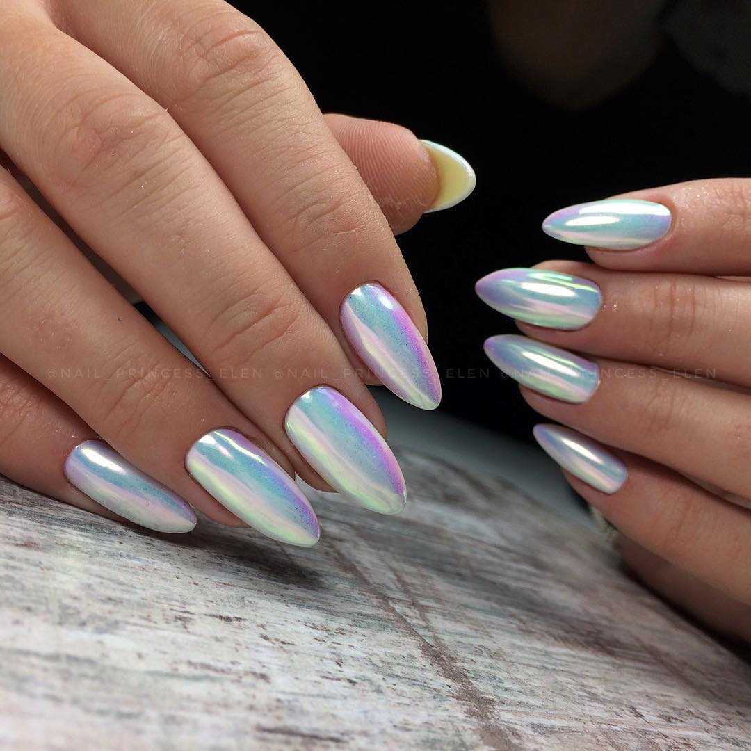 Рекомендую присмотреться и к блестящему переливающемуся маникюру. Лучшие мастера маникюра уже давно используют это в практике.