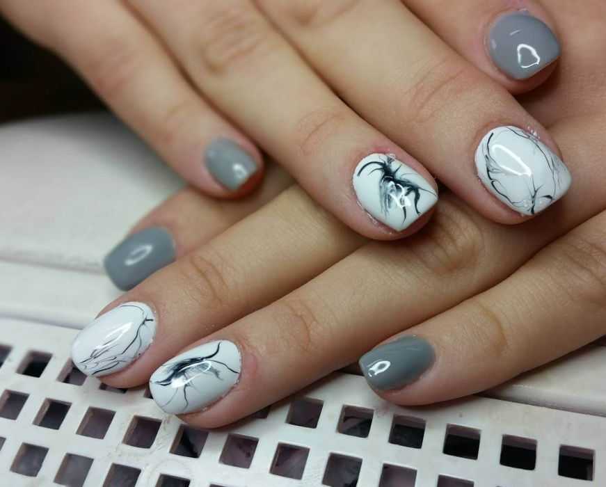 Красивый серый маникюр с эффектом мрамора