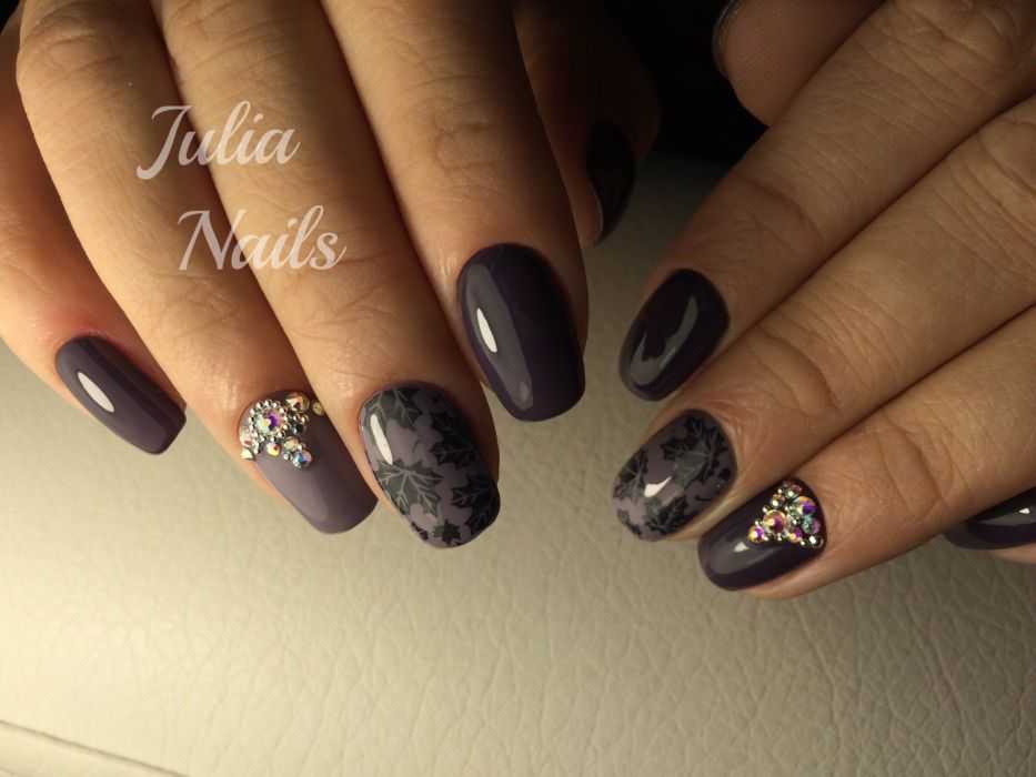 Модный серый маникюр со стразами
