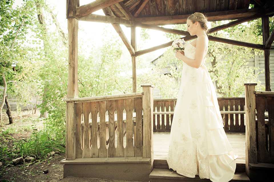 Главное здесь — правильно подобранный ракурс. Сделанное под таким углом, фото выгодно подчеркнет прическу и макияж виновницы торжества. Исполненное романтики и нежности, оно наилучшим образом отразит настроение этого дня.