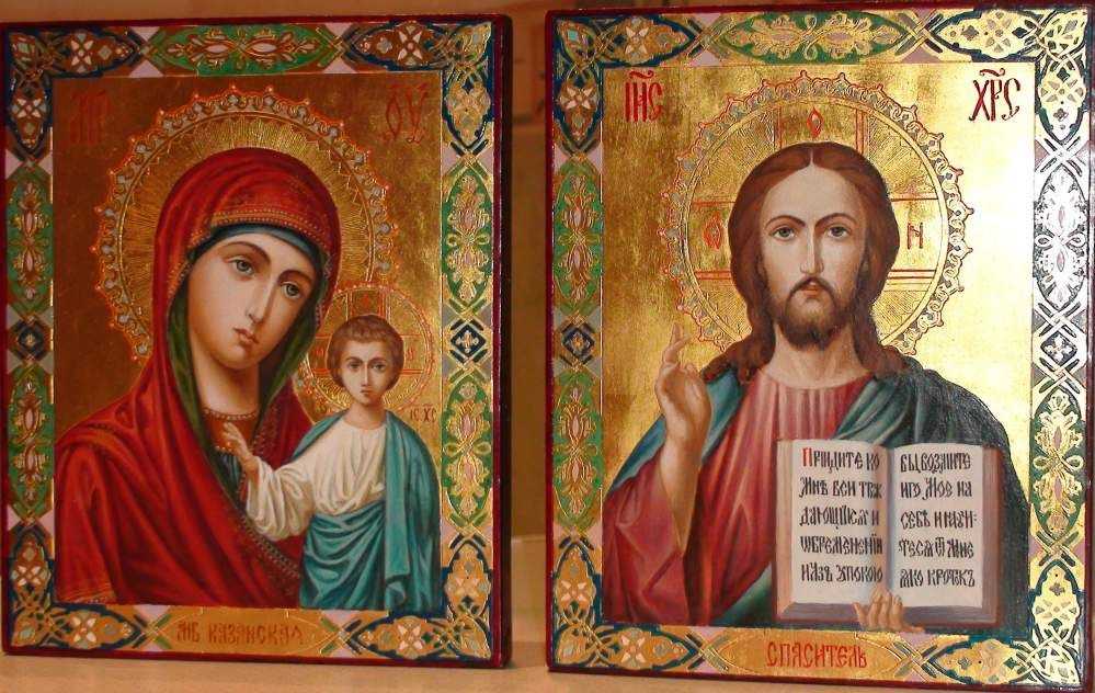 Божией Икона Матери и икона Спасителя используются соблюдении при христианских традициях на свадьбе.