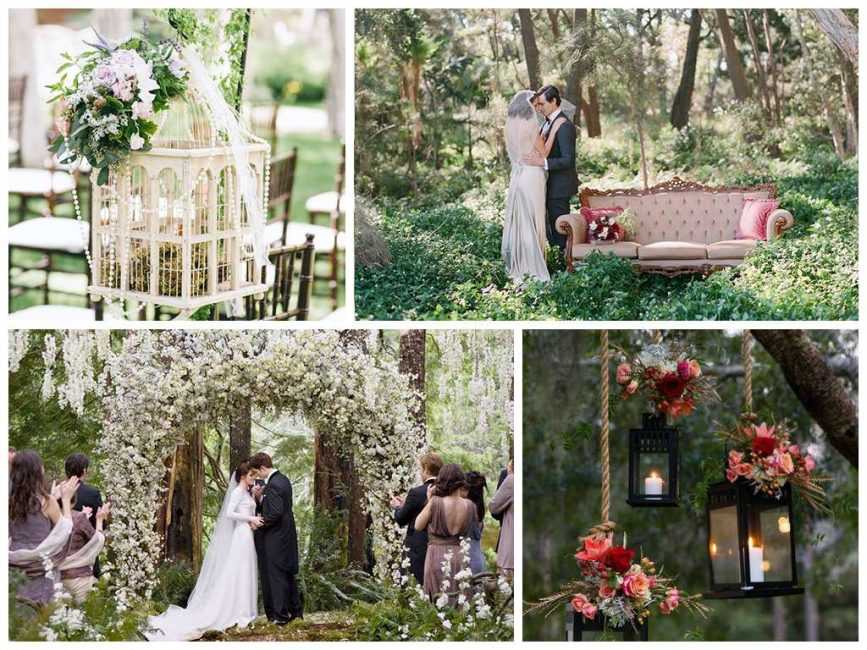 1Бохо, или сказка леса. Невеста здесь олицетворяет собой лесную фею, а жених, конечно, прекрасный принц. Все должно выглядеть наиболее естественно, шатры из натуральных материалов, украшения в виде фонариков, полевых букетов и музыка ветра.