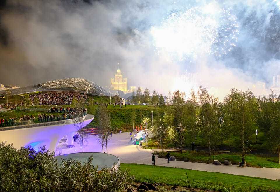 Сердцем парка является парящий мост, с высоты которого можно сделать фото набережной Москвы-реки и Кремлевских башен.