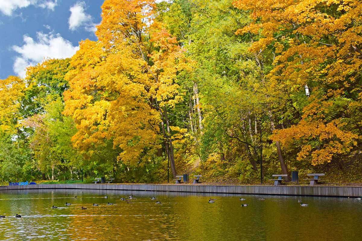 Конечно, ловить осеннее настроение можно и в Партере Парка Горького, однако за уютной атмосферой старой дворянской Москвы лучше сразу направиться в Нескучный сад. Крупный пейзажный парк известен своими романтичными аллеями, красивыми постройками, фонтаном и гротом. Тут особенно приятно затеряться среди старых деревьев, прогуляться вдоль прудов, а затем устроиться на одной из скамеечек под золотистой кроной и, наслаждаясь горячим чаем и вкусной выпечкой, любоваться листопадом.