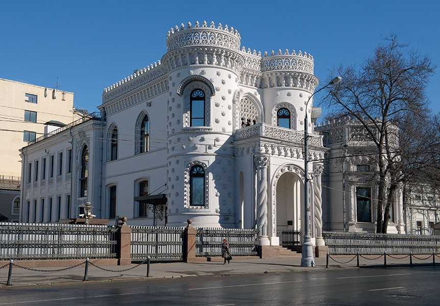 Резной карниз, ракушки на стенах, витые колонны и водосточные трубы — непривычный для классической Москвы XIX века особняк до сих пор притягивает взгляды прохожих.