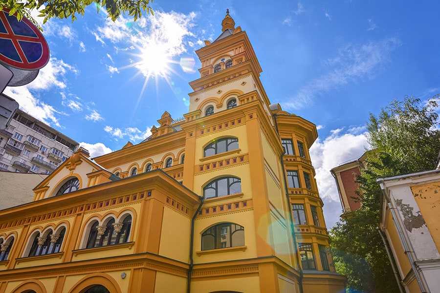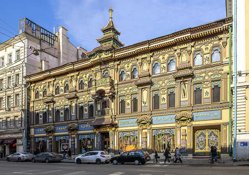 На многолюдной Тверской улице, совсем рядом с Красной площадью, за фасадом сталинского дома-гиганта, скрывается удивительное здание. Если вы зайдете в арку дома № 6 по Тверской, то увидите необычное строение в псевдорусском стиле — с росписями, местами облупившейся мозаикой, яркими изразцами, изящной шатровой башенкой с кокошниками и шпилем.