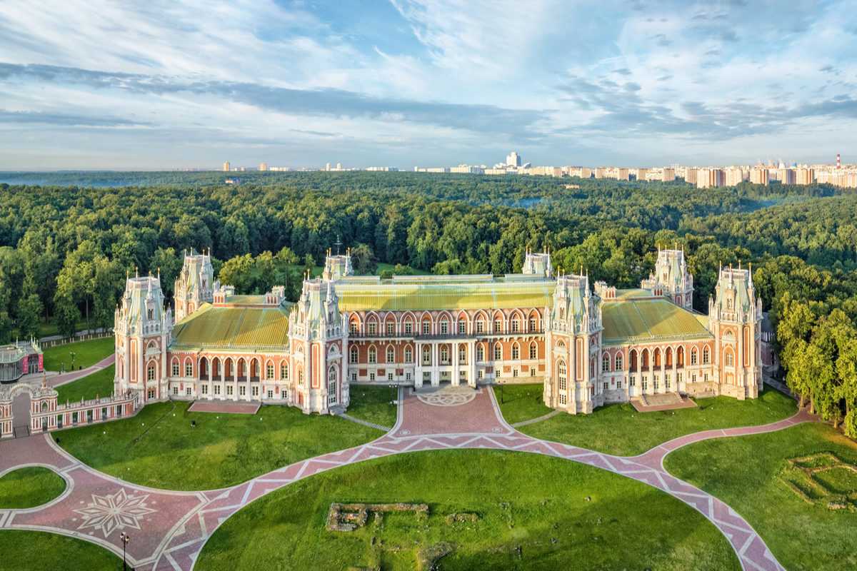 Большой дворец музея-заповедника «Царицыно» ─ одно из самых популярных мест выездных свадеб москвичей. Живописный природный ландшафт и потрясающая архитектура старинного здания словно обещают, что свадьба пройдет по-царски. Роспись в «Царицыно» проводится в Екатерининском или Таврическом залах, Голубой гостиной, Малом дворце или Музыкальной гостиной. Для молодоженов играет струнный квартет, а ведет праздник и следит за таймингом ряженый церемониймейстер. Во время торжества в арендованном зале разрешены фото- и видеосъемка. Время церемонии бракосочетания – 45 минут. Есть возможность организовать после нее фуршет или банкет в одном из нескольких помещений вместимостью от 30 до 120 человек: Екатерининском, Таврическом, Баженовском или Казаковском залах, Музыкальной и Голубой гостиной, Атриуме Хлебного дома, Первой оранжерее.