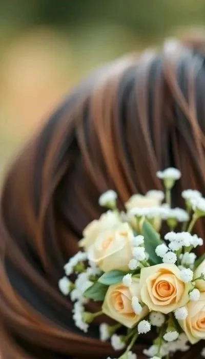 • Правильное крепление: Стилист должен аккуратно и надежно закрепить цветы в прическе, не повреждая их. Используйте специальные шпильки или невидимки, чтобы цветы не выпали и не повредились.
