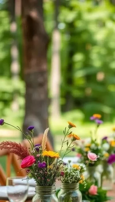 Плюсы: Уют, простота, натуральность, доступность материалов. Минусы: Может выглядеть слишком простовато. Декор: Дерево, мешковина, полевые цветы, свечи, гирлянды.