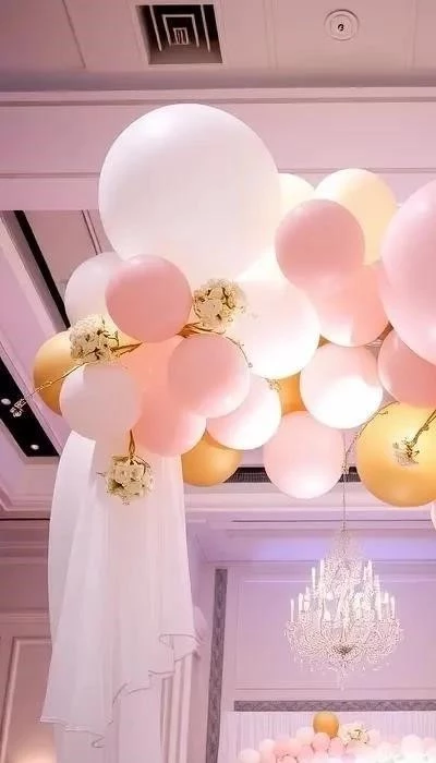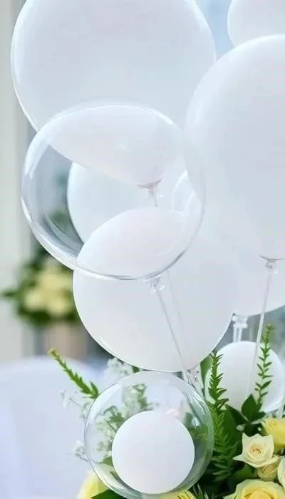 • Сочетания: Шары прекрасно сочетаются с цветами, тканями (шелк, органза), подсветкой (гирлянды, светодиодные ленты).