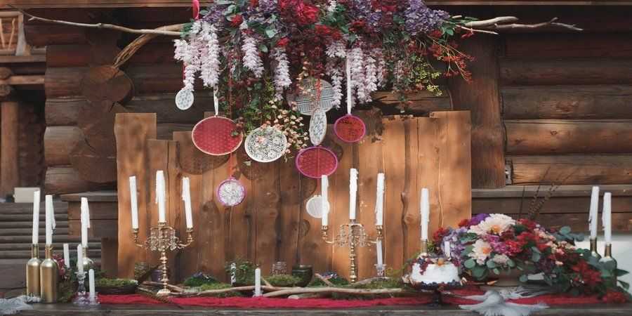 Все эти ленты, ткани, ловцы снов и многое другое действительно выглядит затратно, но любые суммы можно уменьшить, если с креативом подойти к вопросу. Разумеется, заказывая мебель из дерева ради одного фуршета, вы потратите больше, чем приобретёте, но можно взять стулья напрокат или одолжить на пару дней у знакомых. Многие украшения для свадьбы можно сделать самим. Те же фонарики собираются из свечек и стеклянных банок, которые затем вешаются на лыковых верёвках. А уж заранее найти ивовые ветки, согнуть их в венок и украсить лентами сможет любой желающий.