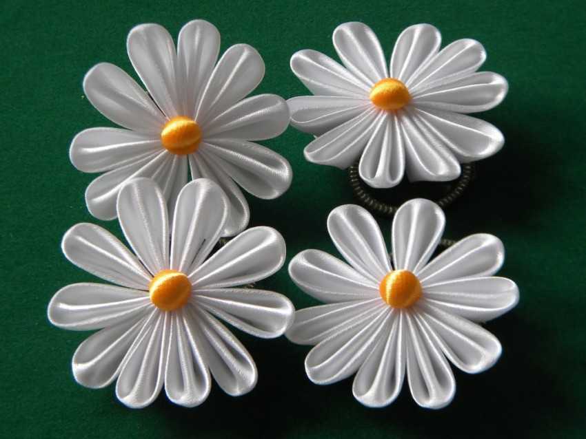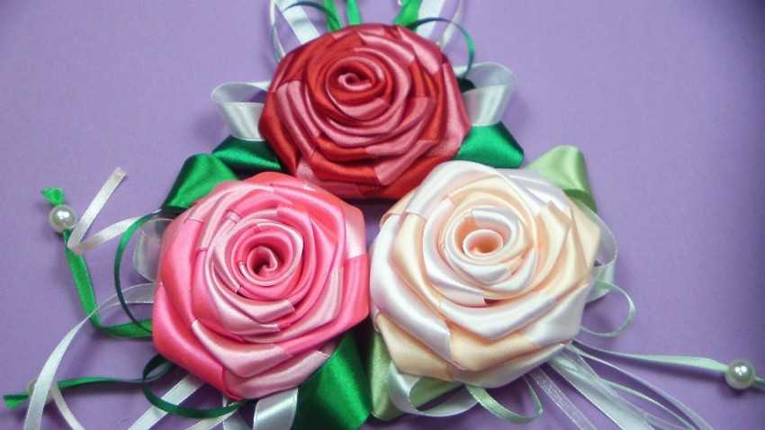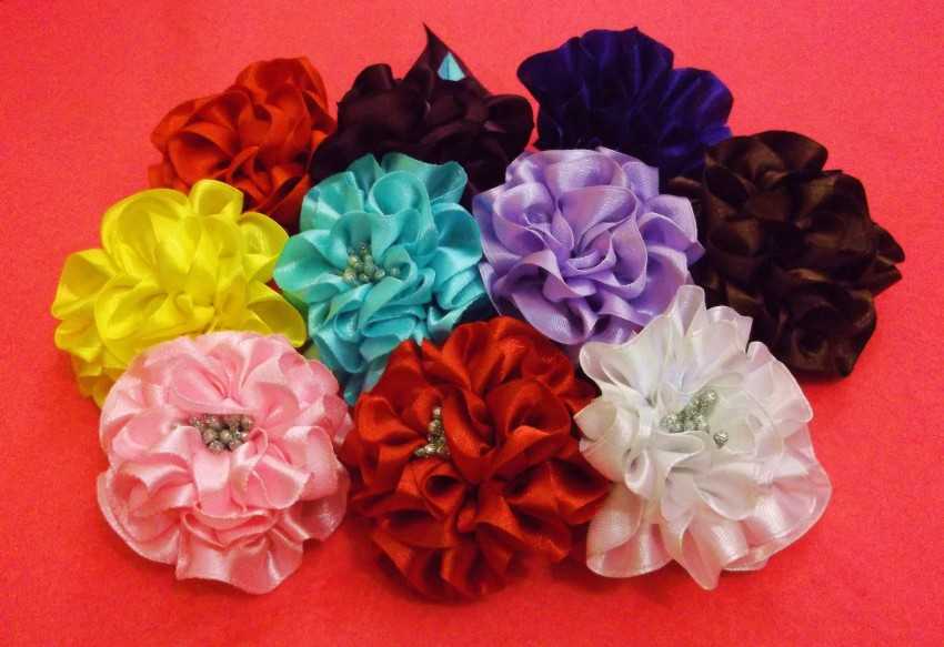 Существует множество вариаций создания эффектных и красивых цветов из ленточек различной ширины. В декоре шляпок и сумок лучше всего смотрятся крупные поделки.