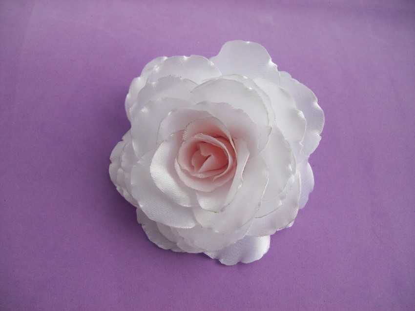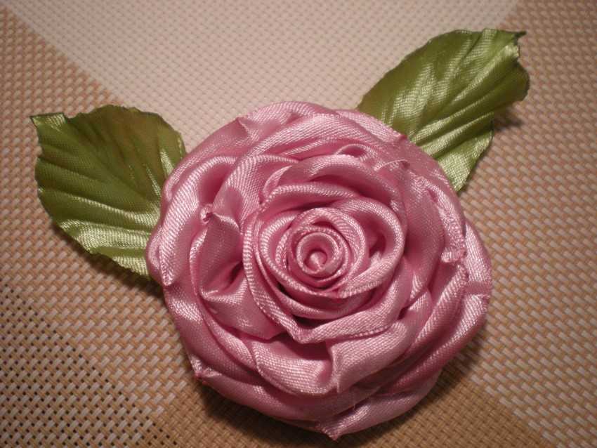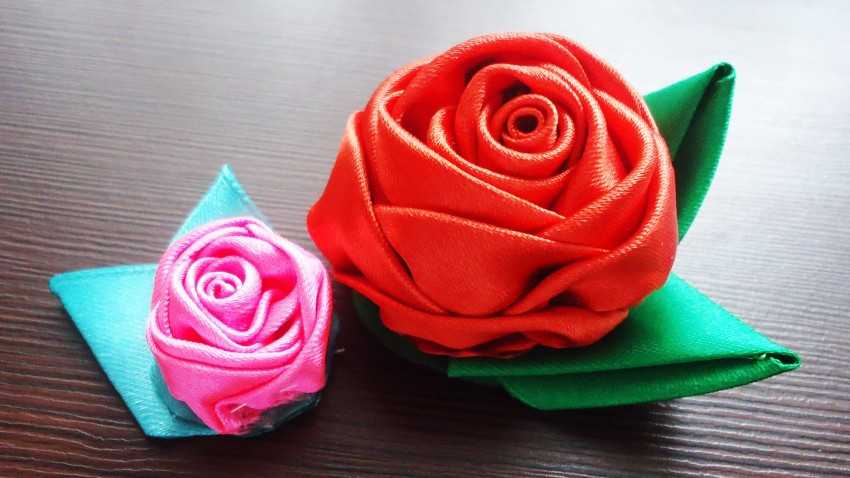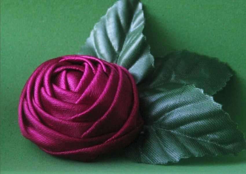Они изготавливаются из нарезанных примерно до 12 см полосок, которые стачиваются вместе, а затем складываются пополам. Полученную из сшитых кусочков полоску накручивают вкруговую. Чтобы композиция держалась, каждый виток простегивают. Скрутить розочку можно и из узкой ленточки. Один край отрезка прошивают наметочными стежками, а потом стягивают. Ленту наматывают по кругу, фиксируют стежками.