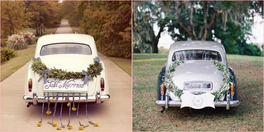 Украшения на машины тоже должны соответствовать общей тематике торжества. Наиболее оптимальный способ декорирования — это ленты или шары нужного цвета.