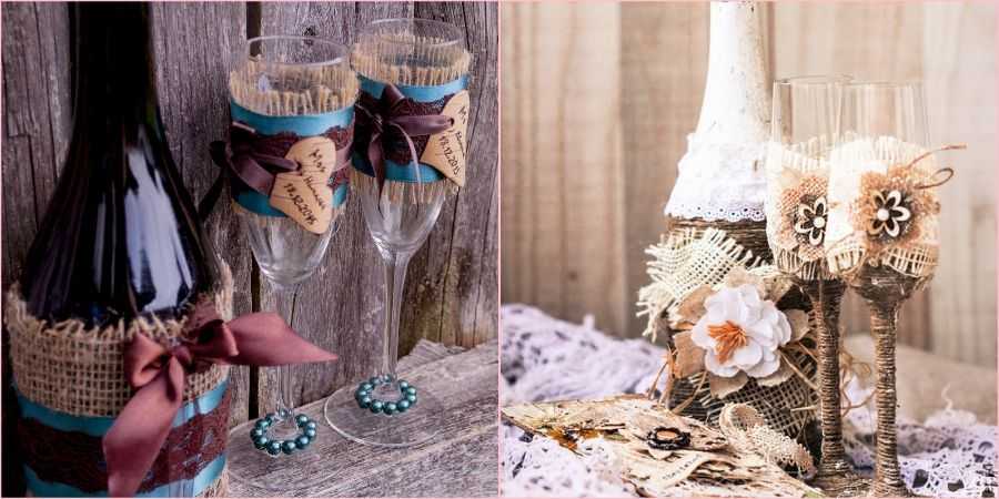 Если финансы ограничены, то вы сами можете создать декор hand made, самостоятельно украсить бокалы для молодожёнов.