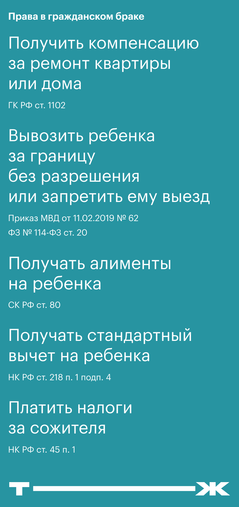 | У бракоподобных отношений нет юридической силы | Для государства два человека, живущих вместе без штампа в паспорте, приходятся никем друг другу, даже если в их гражданской семье царит полное согласие. |