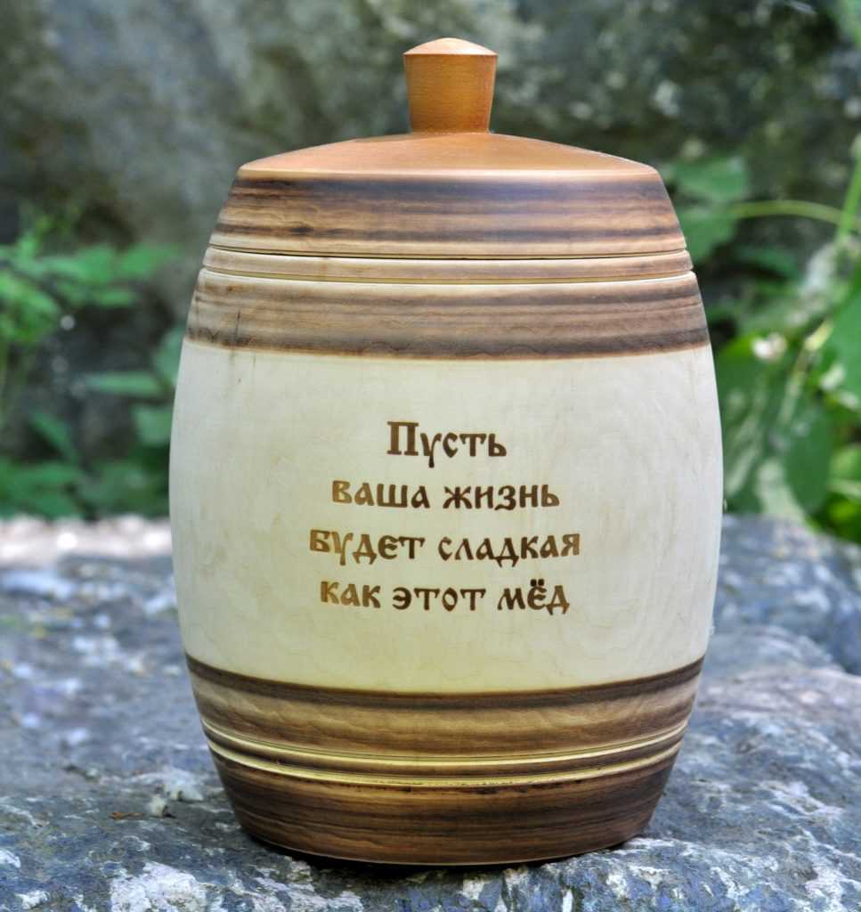 Альтернативой, сказочному подарку, станет бочка меда. Ее так же наполняют, как и горшок, и вручают супругам. Если бочонок внушительных размеров, то его лучше передать в руки жениха, так как вес такого сюрприза будет не маленьким.