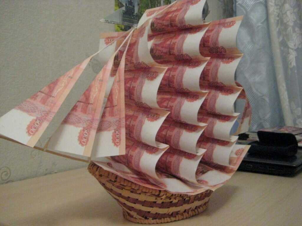 - вместе с декоративным кораблем, с банкнотами вместо парусов.