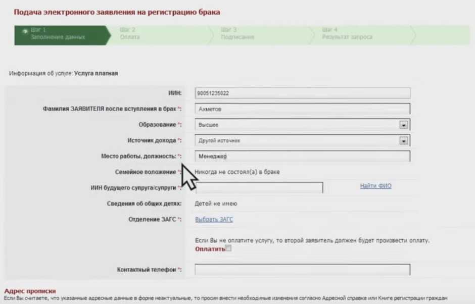 Важно знать, что совместное заполнение онлайн-заявки осуществляется и женихом, и невестой с использованием своего личного кабинета. Это необходимо для подтверждения обоюдности принятого решения.