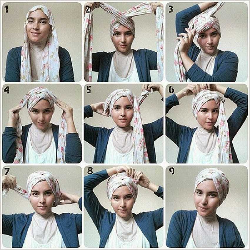 Фиксация накидки в виде чалмы – еще один способ, который поможет создать стильный образ. Повязывать нужно, соблюдая пошаговую инструкцию: