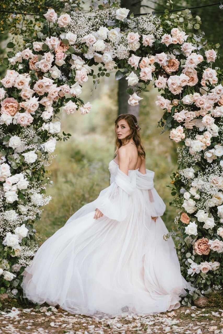 Мы хотели красивую выездную церемонию на природе и вечер в формате европейского ужина, где будут только близкие люди. Концепцию свадьбы мы назвали «природная романтика». Хотелось легкости, нежности и натуральности.