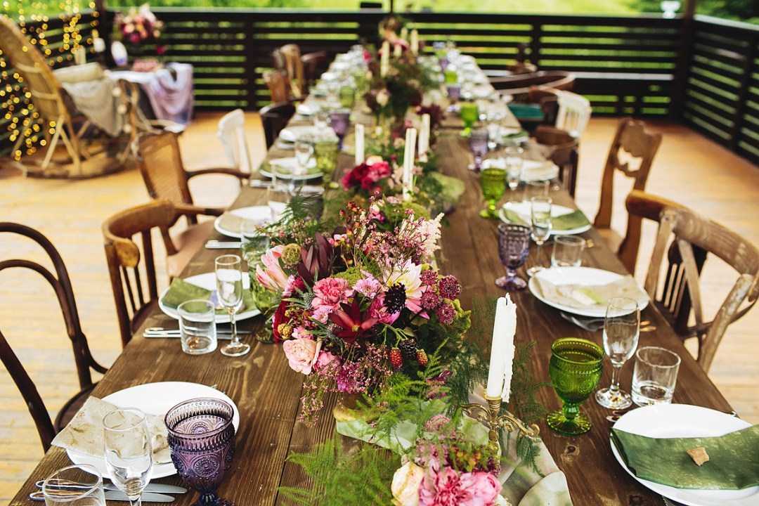 Если на вашей свадьбе присутствуют только члены семьи и близкие друзья, подчеркните камерность и интимность праздника, создав по-настоящему теплую и уютную атмосферу. Организуйте торжество в формате семейного ужина, когда все гости и молодожены сидят за одним длинным столом в окружении теплого света свечей. Спокойная музыка, расслабленная атмосфера, задушевные беседы – это именно то, что сделает ваш праздник незабываемым!