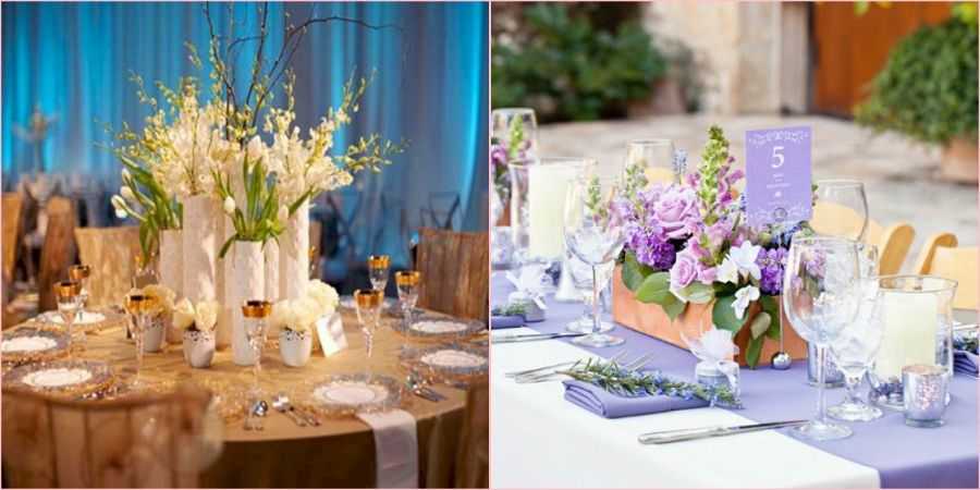 Цветы считаются классикой свадьбы, они должны присутствовать и перед молодыми и на праздничных столах приглашенных гостей. Из цветов можно делать и букеты, и композиции. Лилии, розы и другие разновидности можно ставить в фигурные вазы. Можно оборвав с них лепестки, положить в плоские блюда с водой, а сверху них разместить плавающие свечи. Покупать цветы следует заранее, а выставлять на столы в вазы перед началом празднования.