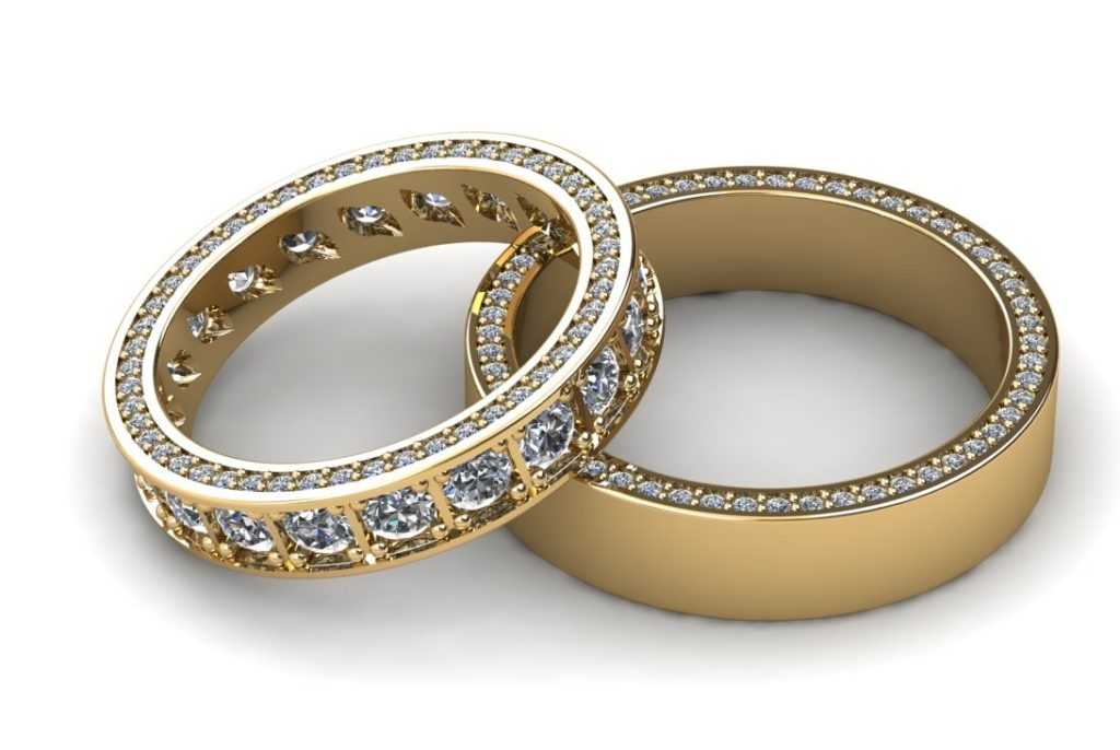 Сгравировкой. Встречаются уже готовые варианты с общими фразами, например, «I love you», но можно нанести любые слова или изображения на поверхность кольца уже после покупки. Такой вариант встречается все чаще, поскольку таким образом молодожены хотят увековечить символичные для них фразы.