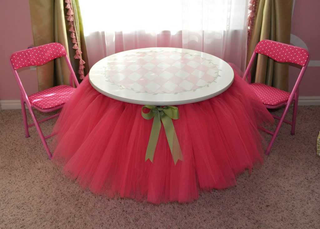 Стол, за которым будут сидеть новоиспеченные муж и жена, должен выделяться среди общего убранства и быть в одном стиле с другими элементами. Прекрасным убранством свадебного стола своими руками станет юбка из фатина или тюли. Оригинальным украшением будет композиция из живых цветов, которая, как правило, имеет продолговатую форму и размещается в центре. Декор свадебного стола можно дополнить бантами из атласных полосок.