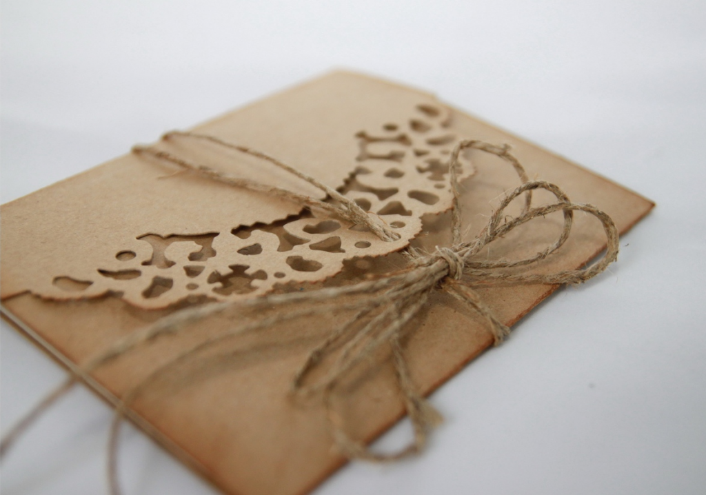 Максимально простой в изготовлении вариант открытки. Как следует из названия, центральным местом такой пригласительной открытки является кружево, которое приковывает на себе взгляды.