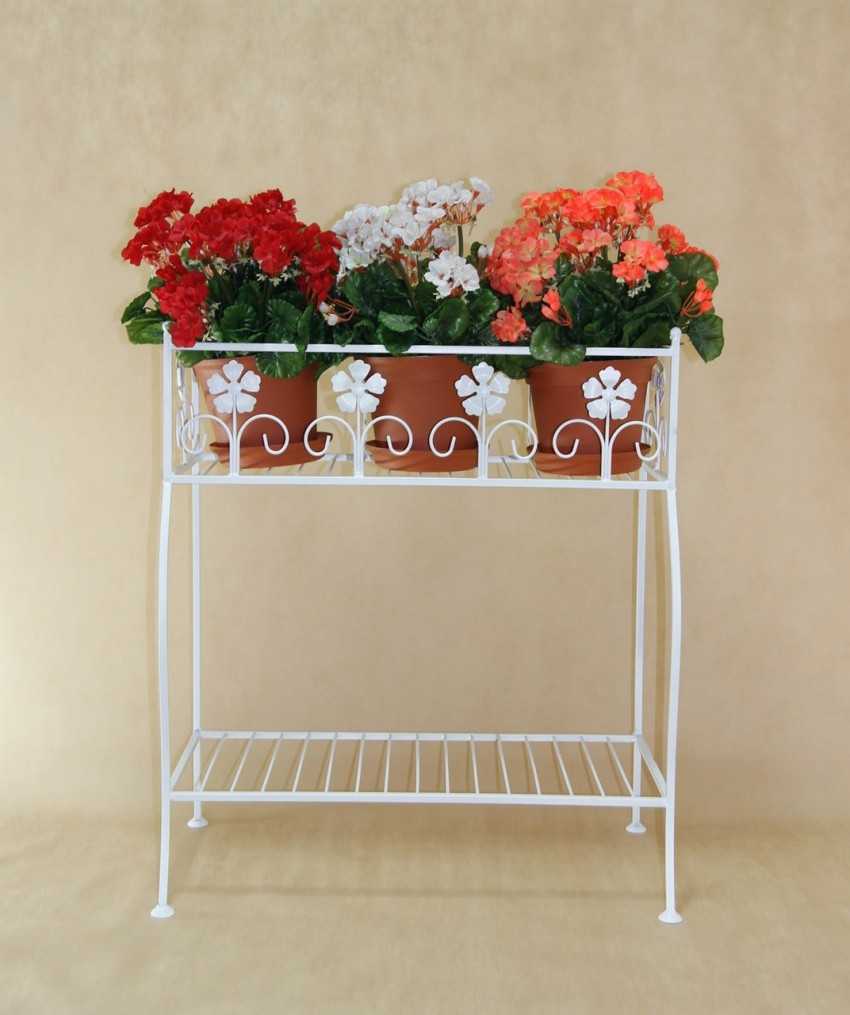 На фото подставки изготовленной своими руками видно, какой она может получиться в конечном виде. Для создания изделия для цветочных растений потребуются металлические профили.