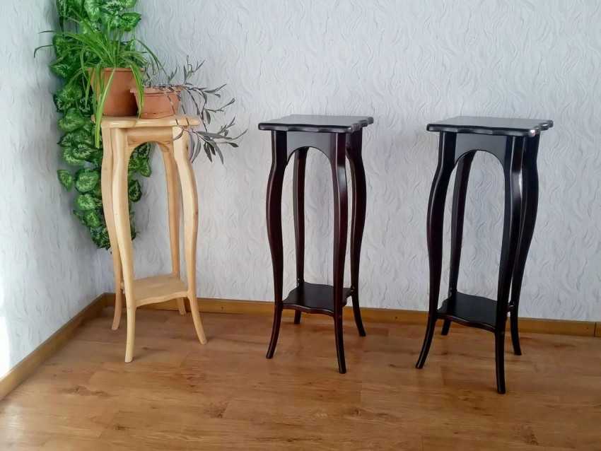 В обязательном порядке необходимо соблюдать верные размеры ширины и высоты. Поэтому лучше предварительно выработать шаблон и чертеж подставки для цветов своими руками. От него будет зависеть, какое растение будет размещено в напольной поделке, а также какой величины будут сами горшки.