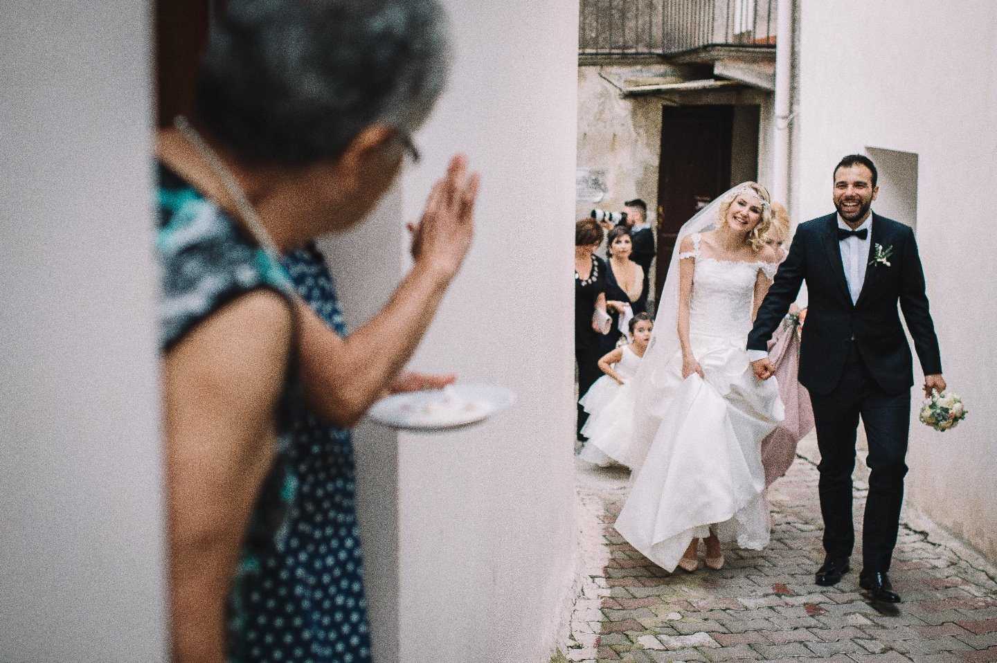 А после официальной части нас ждал традиционный для Сицилии проход по деревне. В Пеццоло настолько узкие улочки, что проехать на машине там просто невозможно. На пути из церкви нас с Людовико приветствовали криками «Auguri!» (поздравляем!) местные жители. Жали нам руки, поздравляли и осыпали рисом на счастье. Это было невероятно трогательно, их чистосердечная доброта и искренняя радость за нас пробирала до слез…