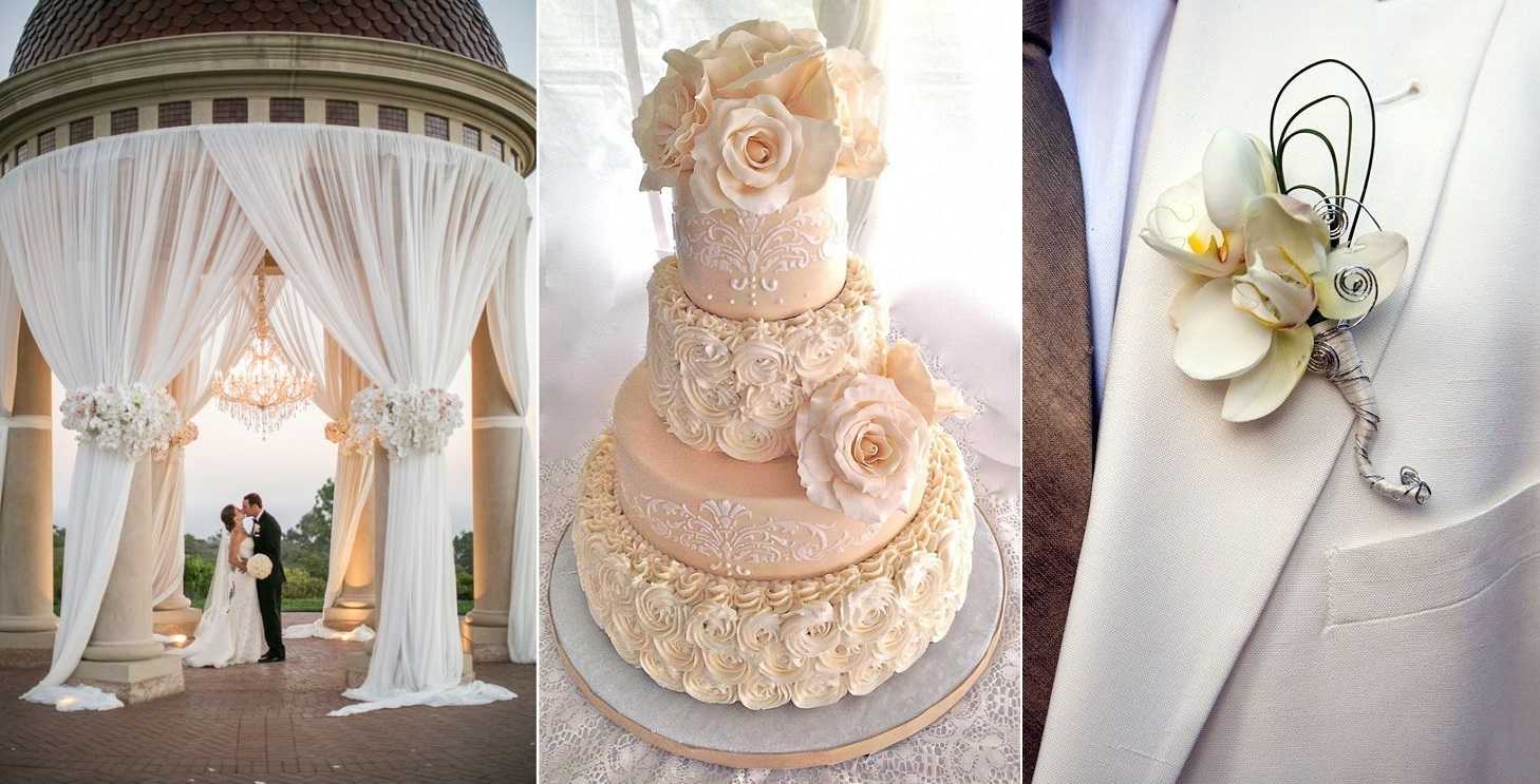 Цвет айвори можно считать универсальным и при желании использовать его в оформлении любой свадьбы. Но существуют стилистики, которые будут выглядеть просто роскошно, если при декорировании будут использованы кремовые и желтоватые оттенки белого цвета. Если молодожены считают оформление всего свадебного торжества в какой-то единой стилистике слишком сложным и хлопотным занятием, то это совершенно не мешает использовать пудровый цвет в традиционной свадебной церемонии. Например, нарядить невесту в платье цвета слоновой кости и в синий костюм с галстуком цвета айвори – жениха. Такое сочетание цветов в свадебных нарядах не будет слишком экстравагантным, но, несомненно, выделит молодоженов в ЗАГСе среди других пар.